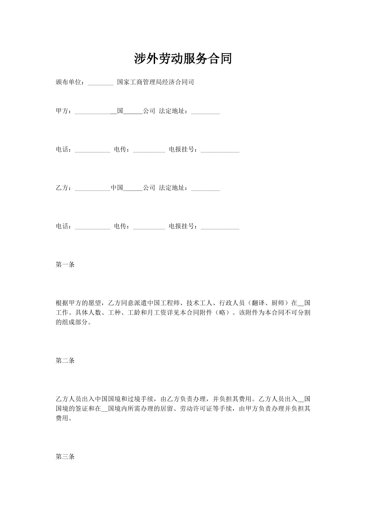 涉外劳动服务合同