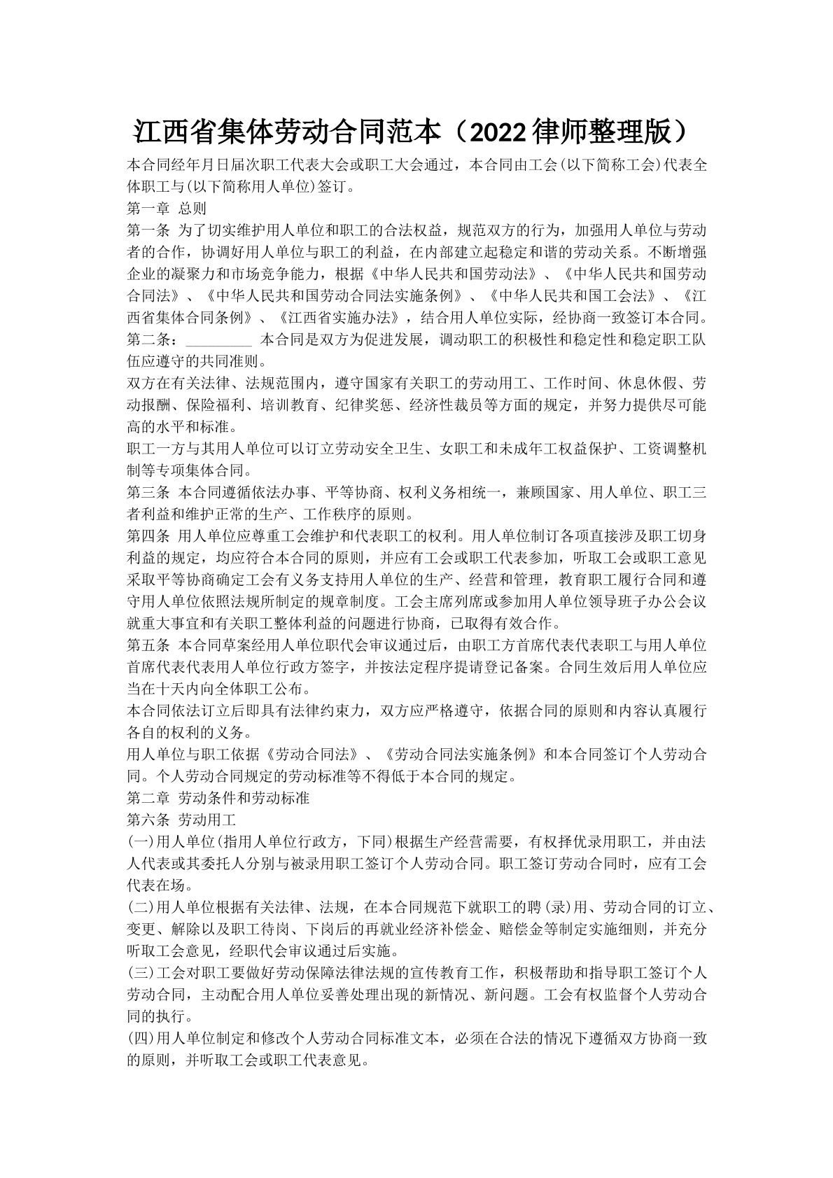 江西省集体劳动合同范本(2022律师整理版)