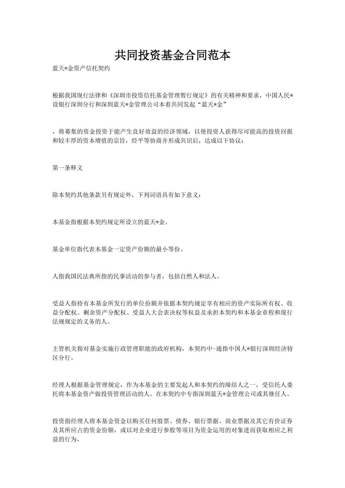 共同投资基金合同范本