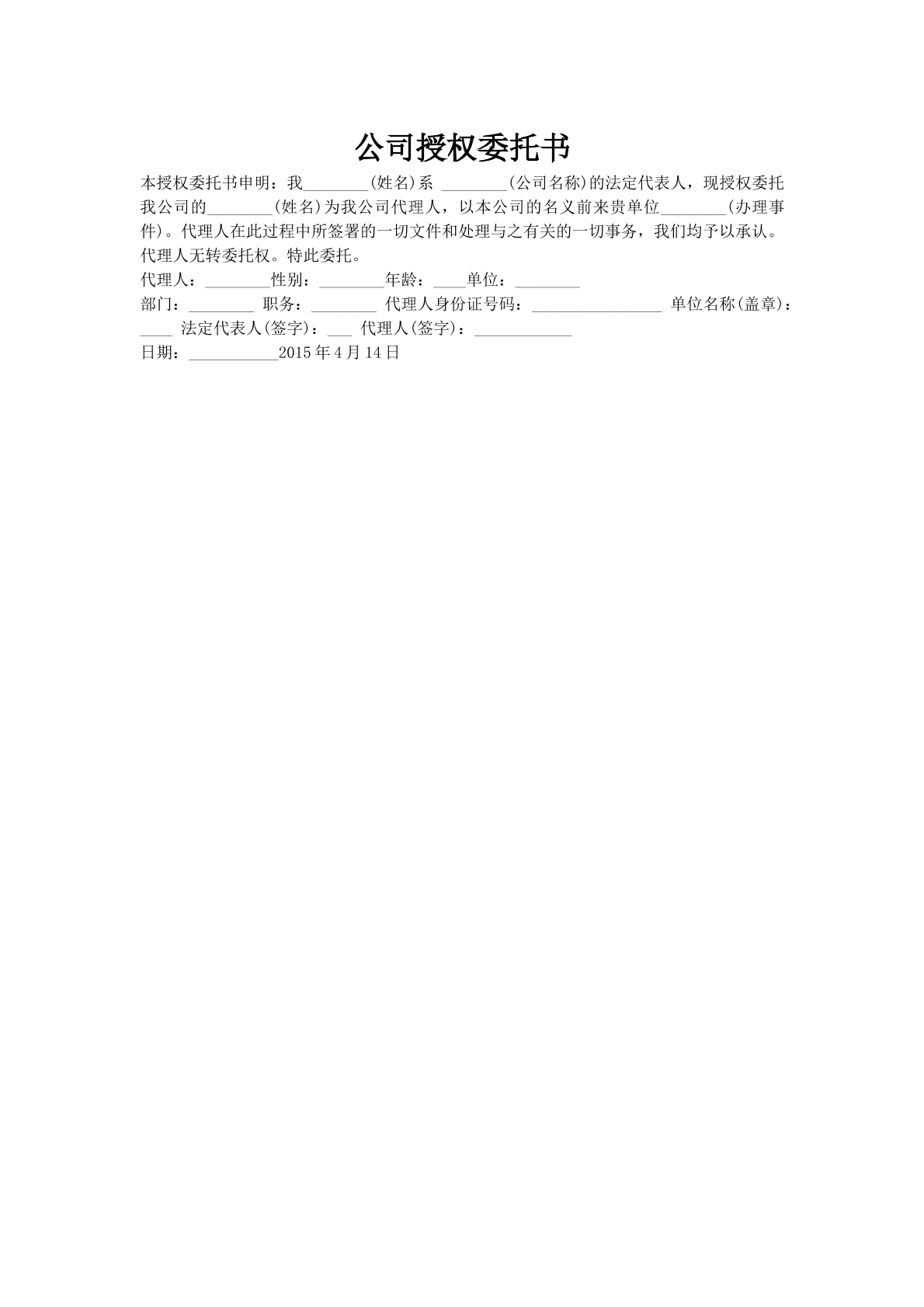 公司授权委托书