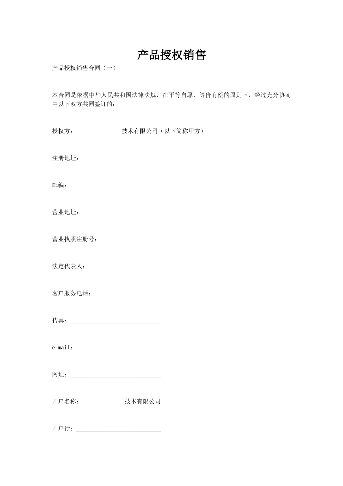 产品授权销售