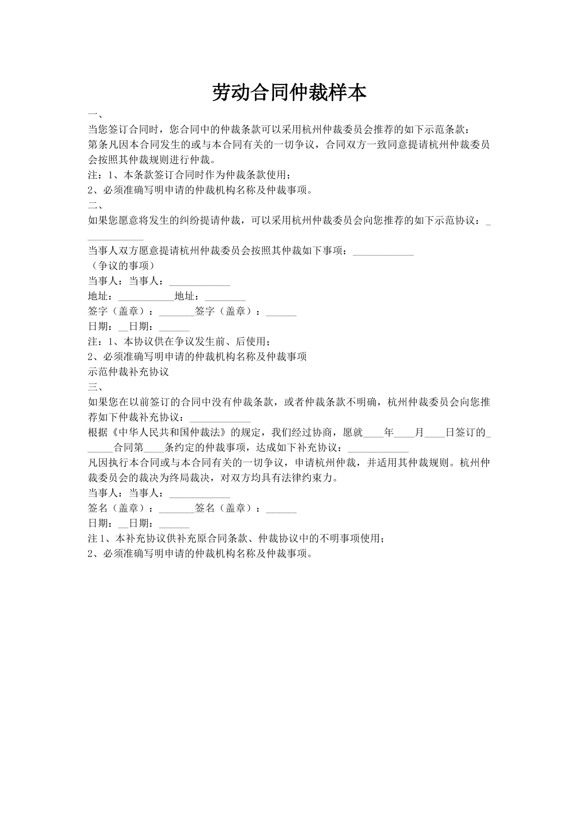 劳动合同仲裁样本